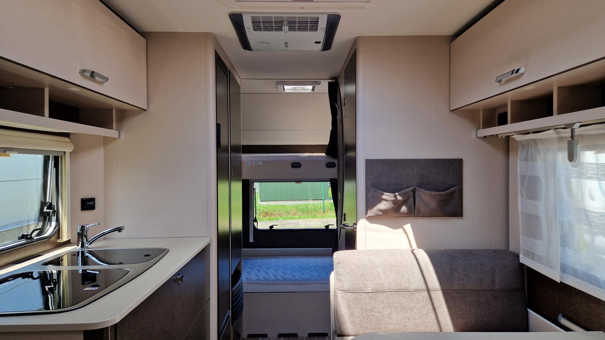 Dethleffs C´Go 495 QSK je ideální obytný přívěs pro rodiny s dětmi. Díky palandám umístěným v zadní části přívěsu a vstupním dveřím, které jsou naopak v přední části, zde mají děti své soukromí.