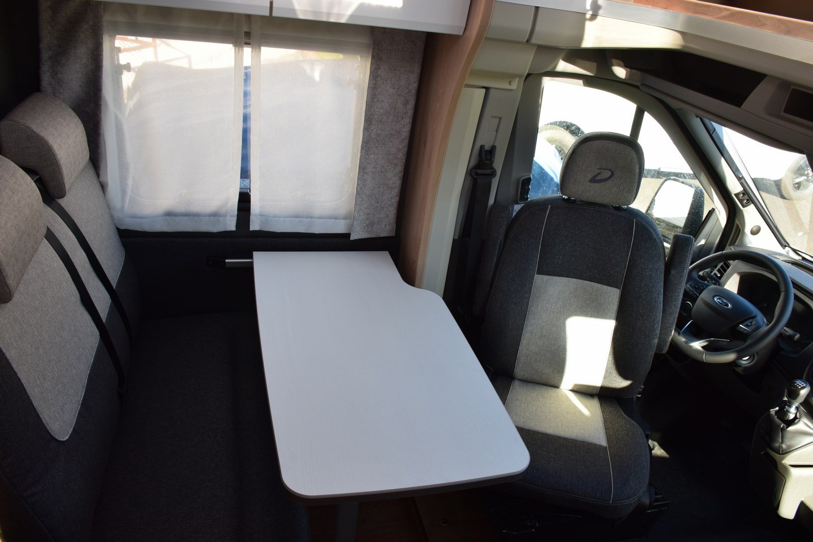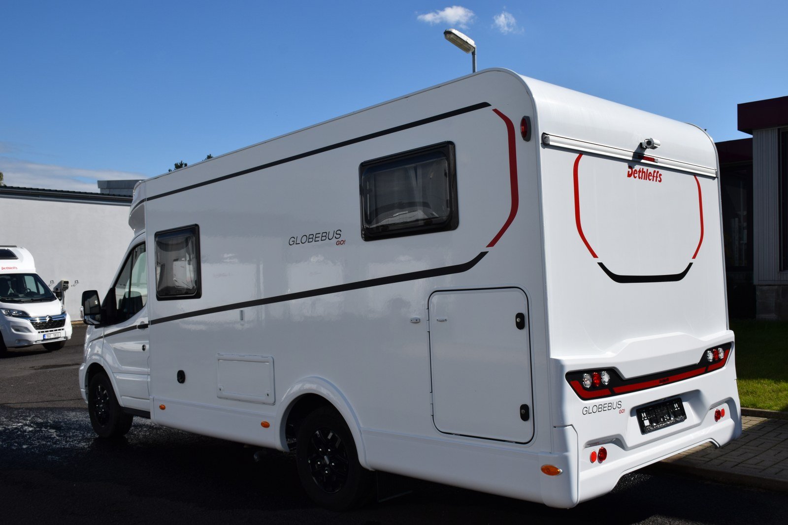 Polointegrovaný vůz Dethleffs Globebus Go T 45 na podvozku Ford je kompaktní obytný vůz (větší a širší než dodávka, ale zároveň menší a užší než klasický obytný vůz), idální pro 2 osoby, s délkou do 7m. Má zadní oddělená lůžka s možností spojení na velké dvoulůžko. Další lůžko je možné získat přestavbou ze sezení, takže ve voze mohou bez problémů spát 3 osoby, cestovat až 4 osoby.