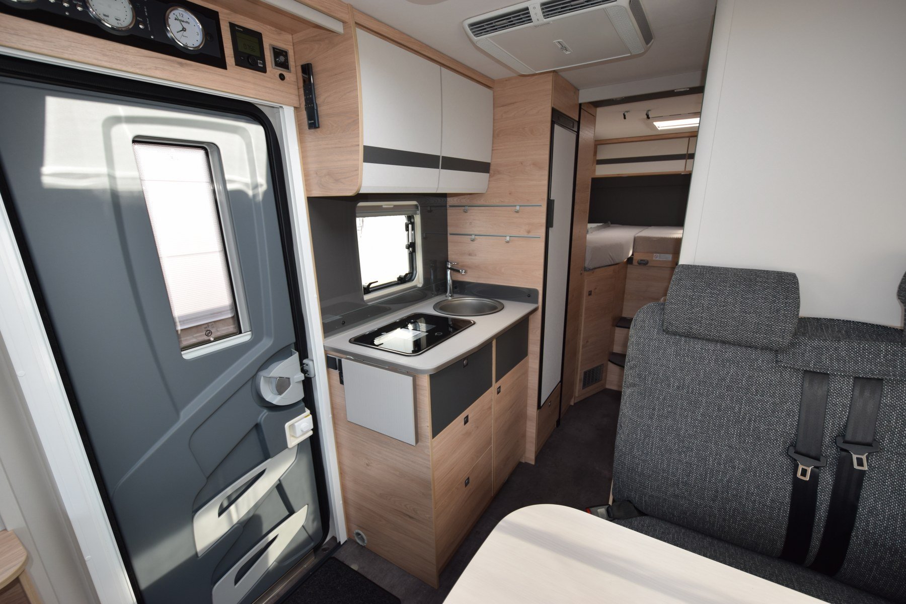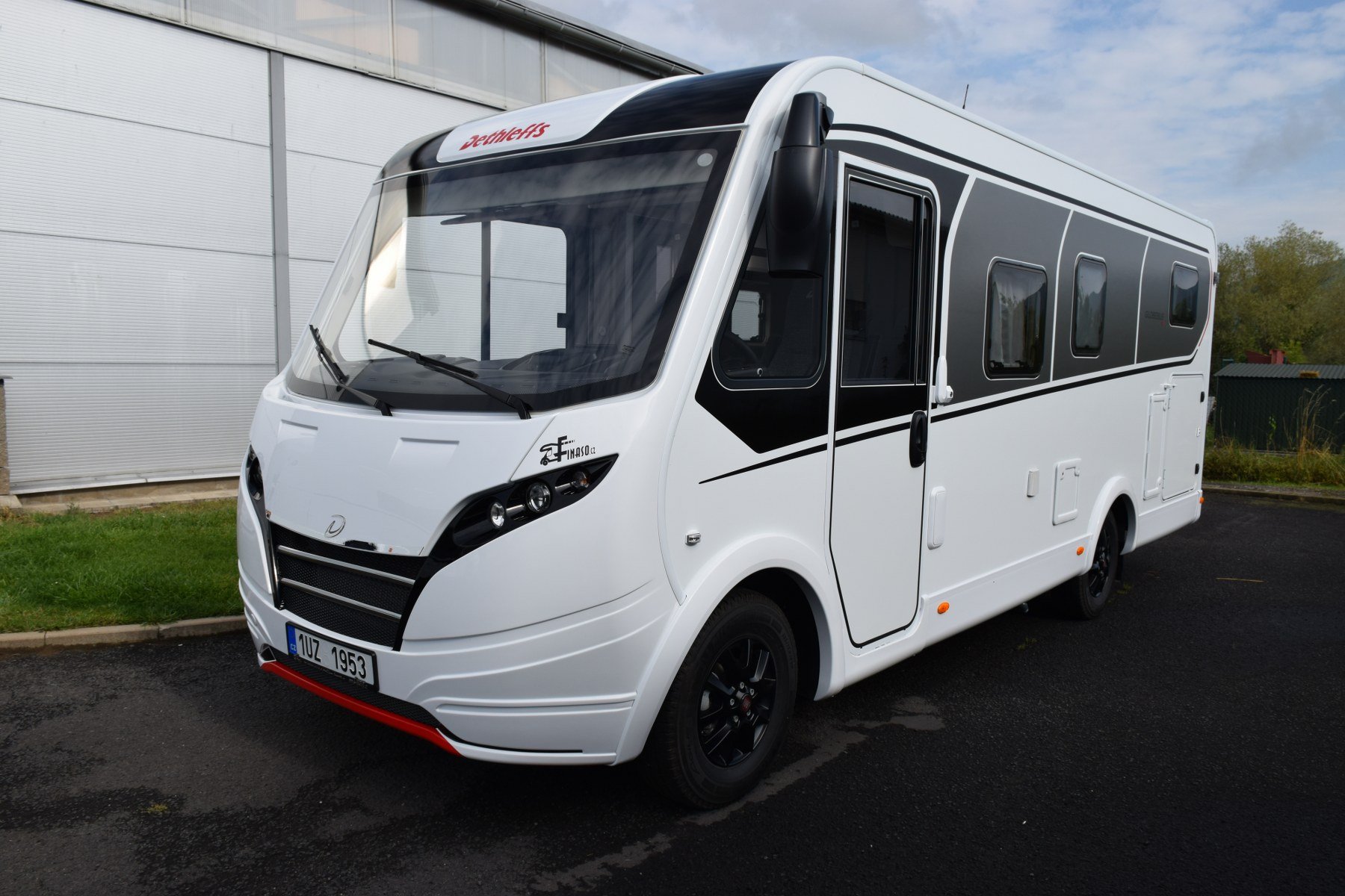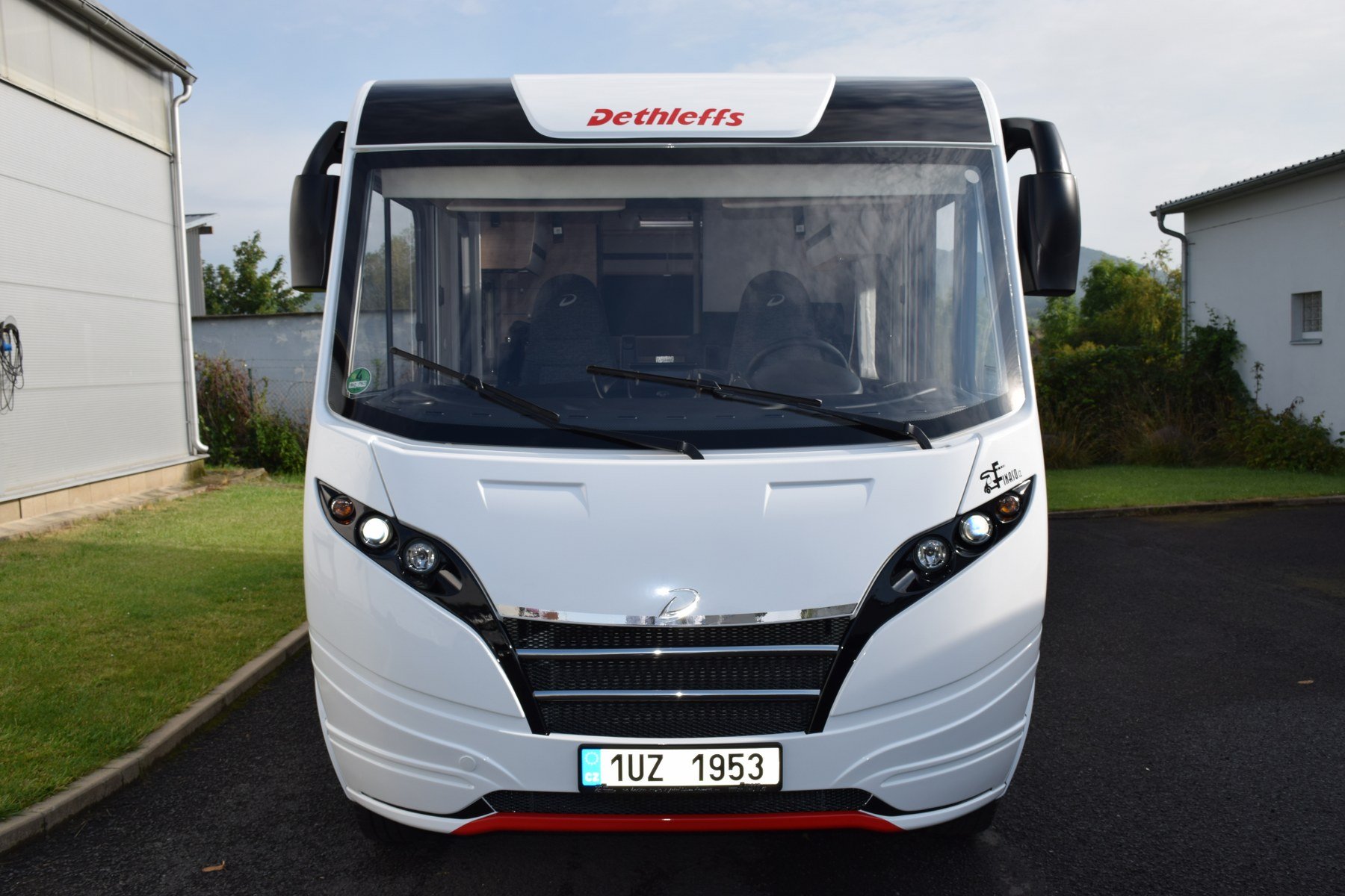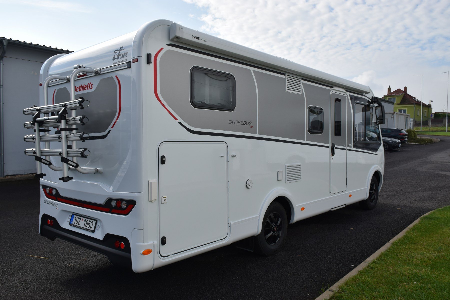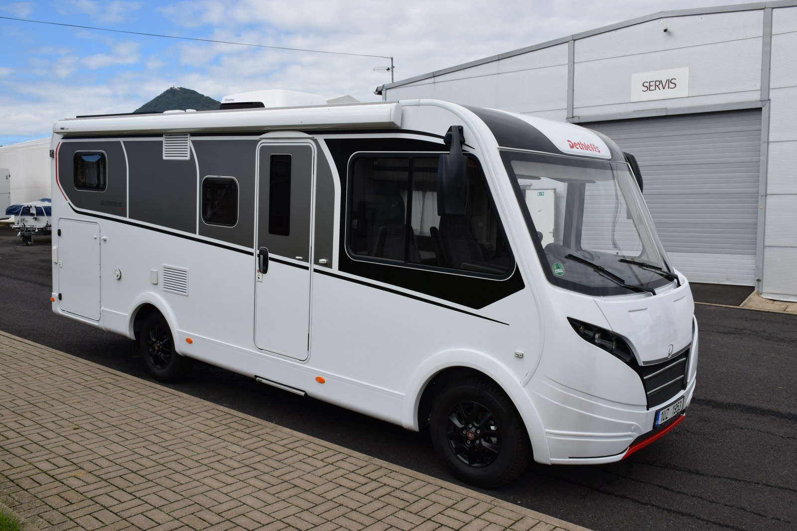 Plně integrovaný vůz Dethleffs GLOBEBUS I 6. Užší než klasický obytný vůz, širší než vestavba. Prostorná garáž, spousta úložných prostor, přední sklopné lůžko, oddělená zadní lůžka s možností spojení - to vše v kompaktním balení s délkou jen 7m.