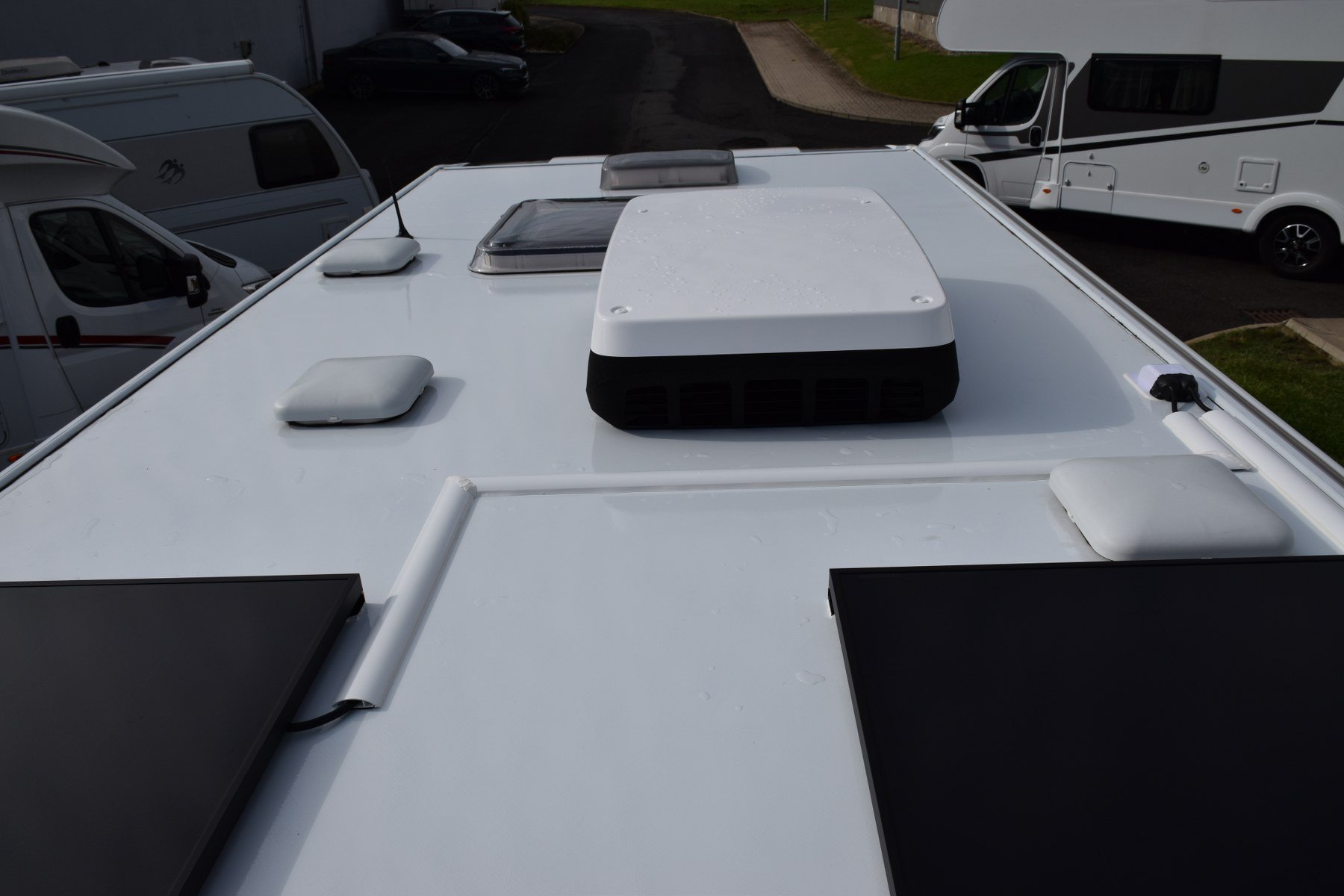 Bohatá doplňková výbava: markýza, regulátor plynu DuoControl, venkovní vývod plynu, solární panely 440Wp, LiFePO baterie 320 Ah, navigace + 2x couvací kamera, nástavbová klimatizace, alarm Jablotron, přídavné zámky, ...